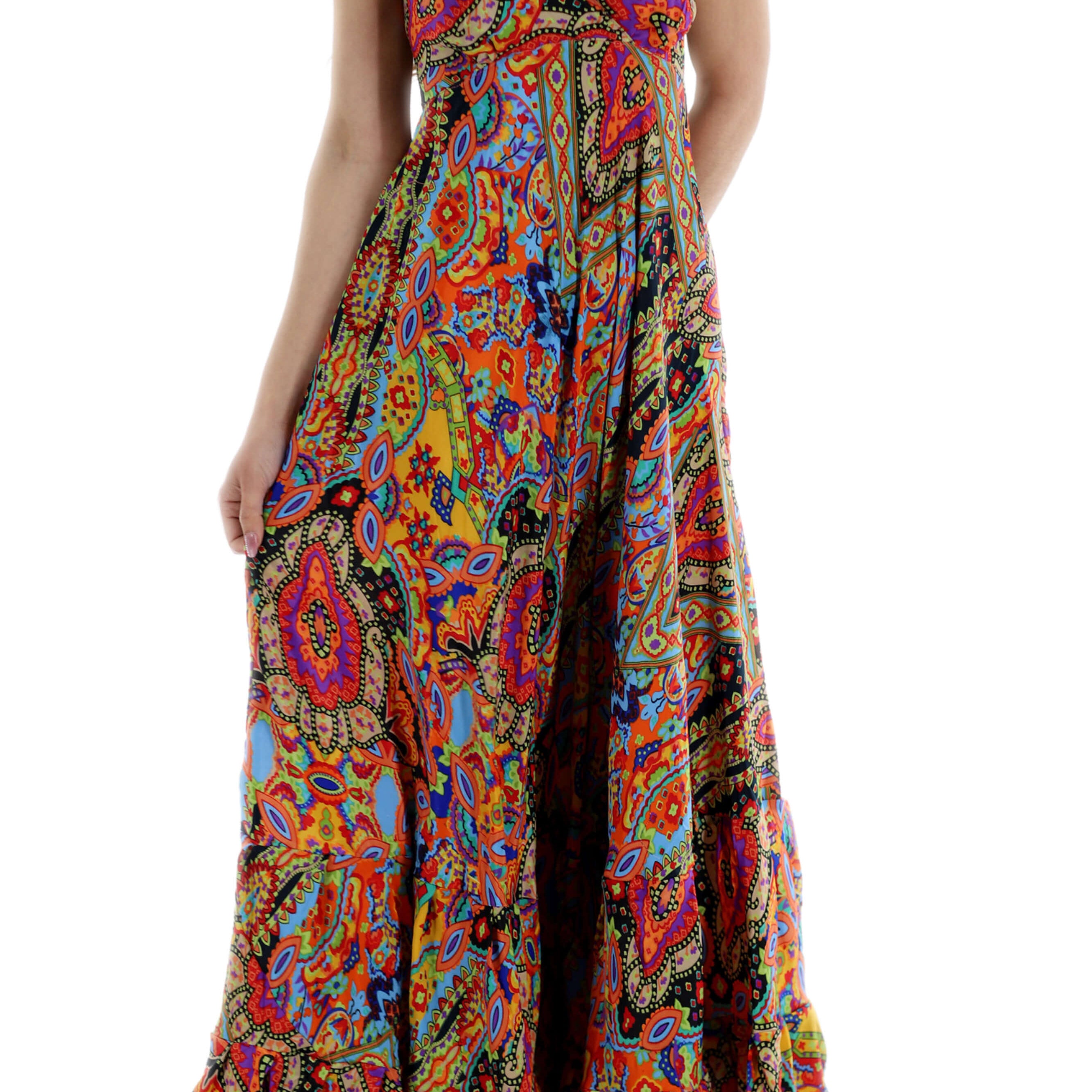 Flowy Long "Laura" 2024 Ver. V Neck Line Dress in Multi