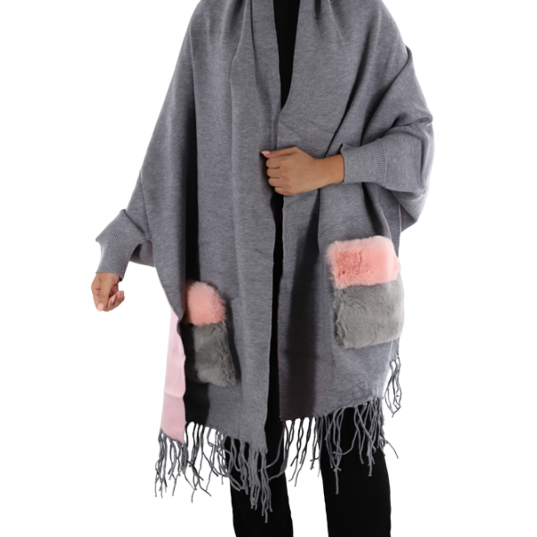Wrap with Faux Fur Trim Pockets