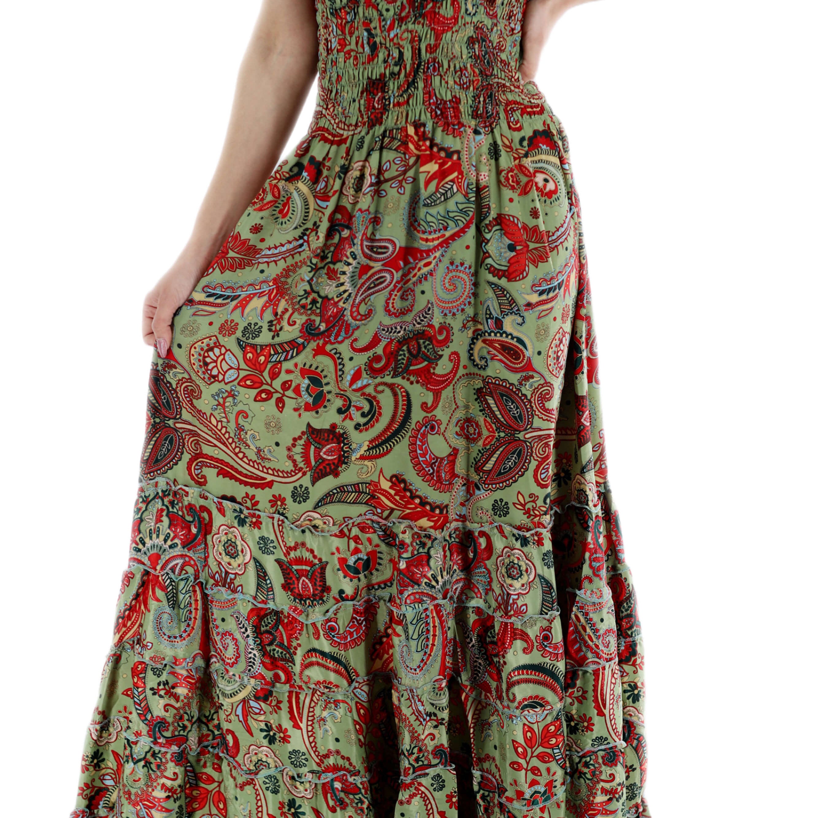 Long Flowy Floral 'Donna' (2024) Maxi Dress in Green