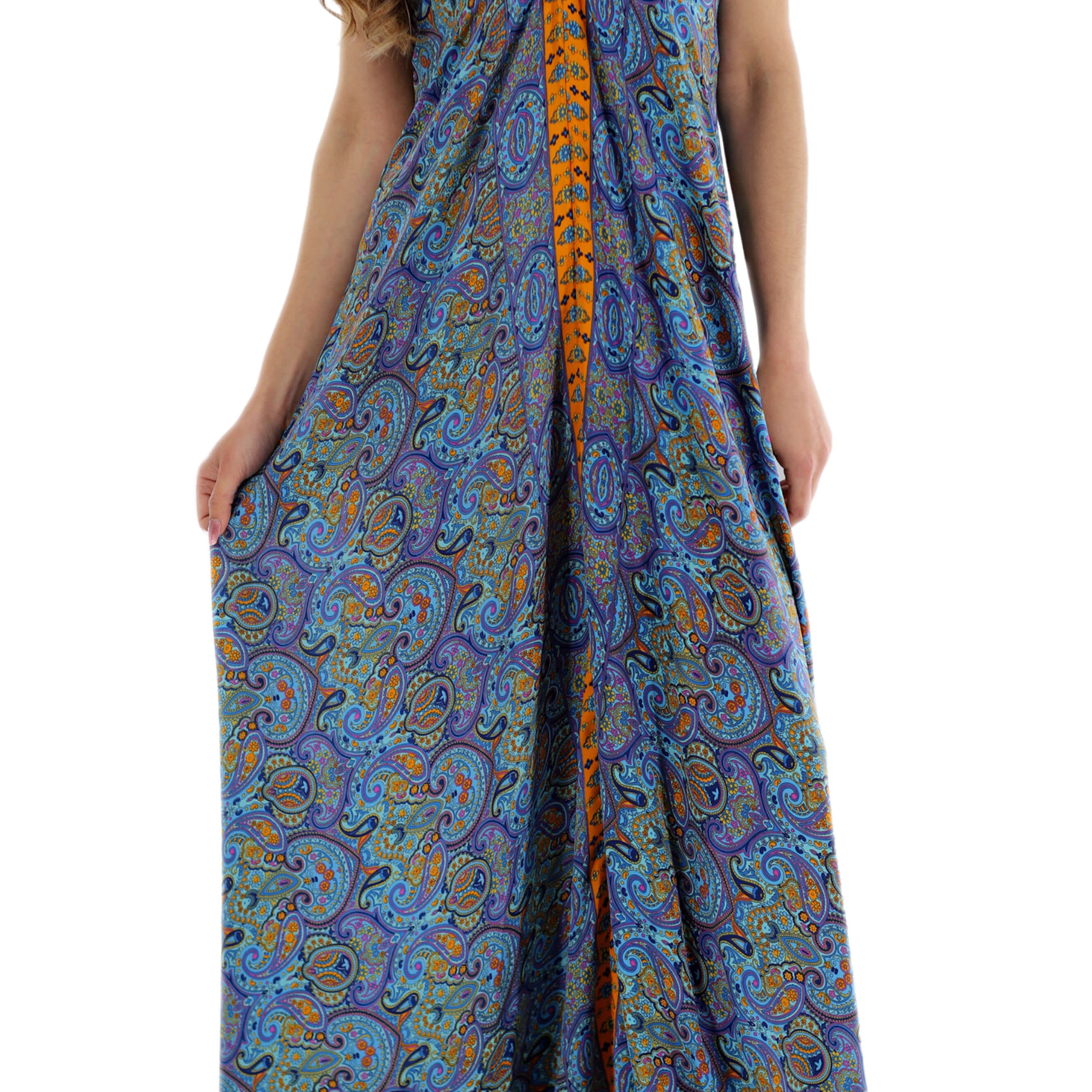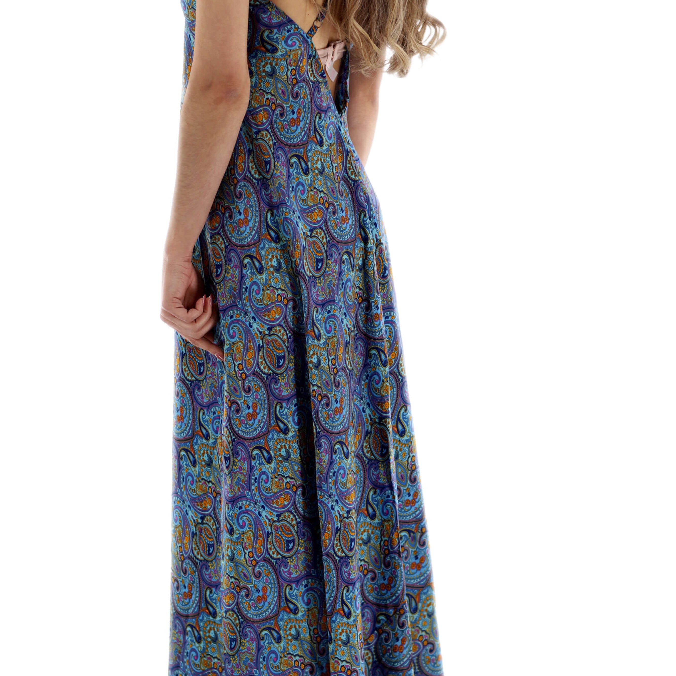 Long Flowy Floral 'Francesca' Maxi Dress in Blue