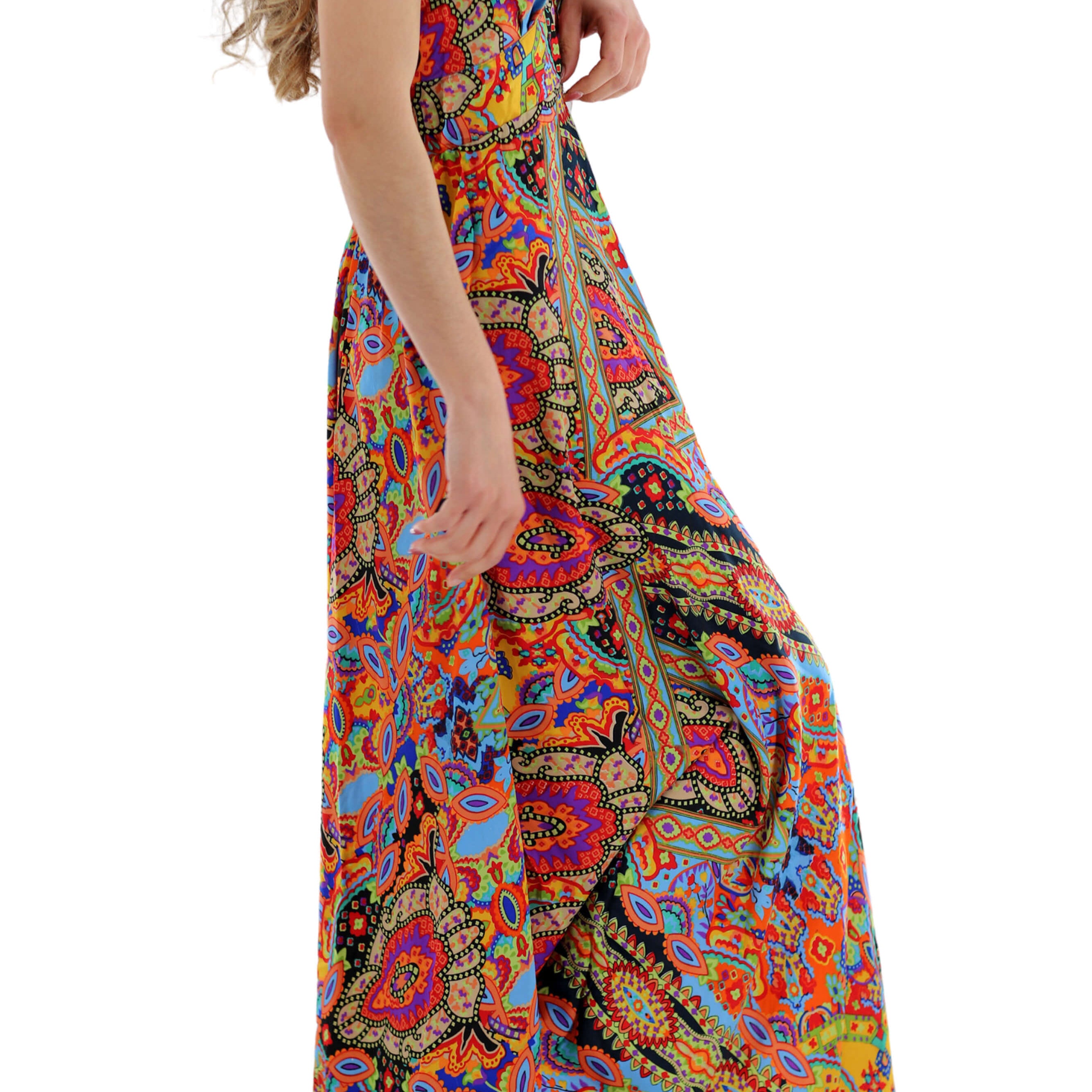 This captivating dress features a delightful floral pattern with a burst of vibrant colors, creating a sophisticated and versatile look. Crafted for comfort and style, the "Romina" Dress seamlessly combines fashion and femininity.