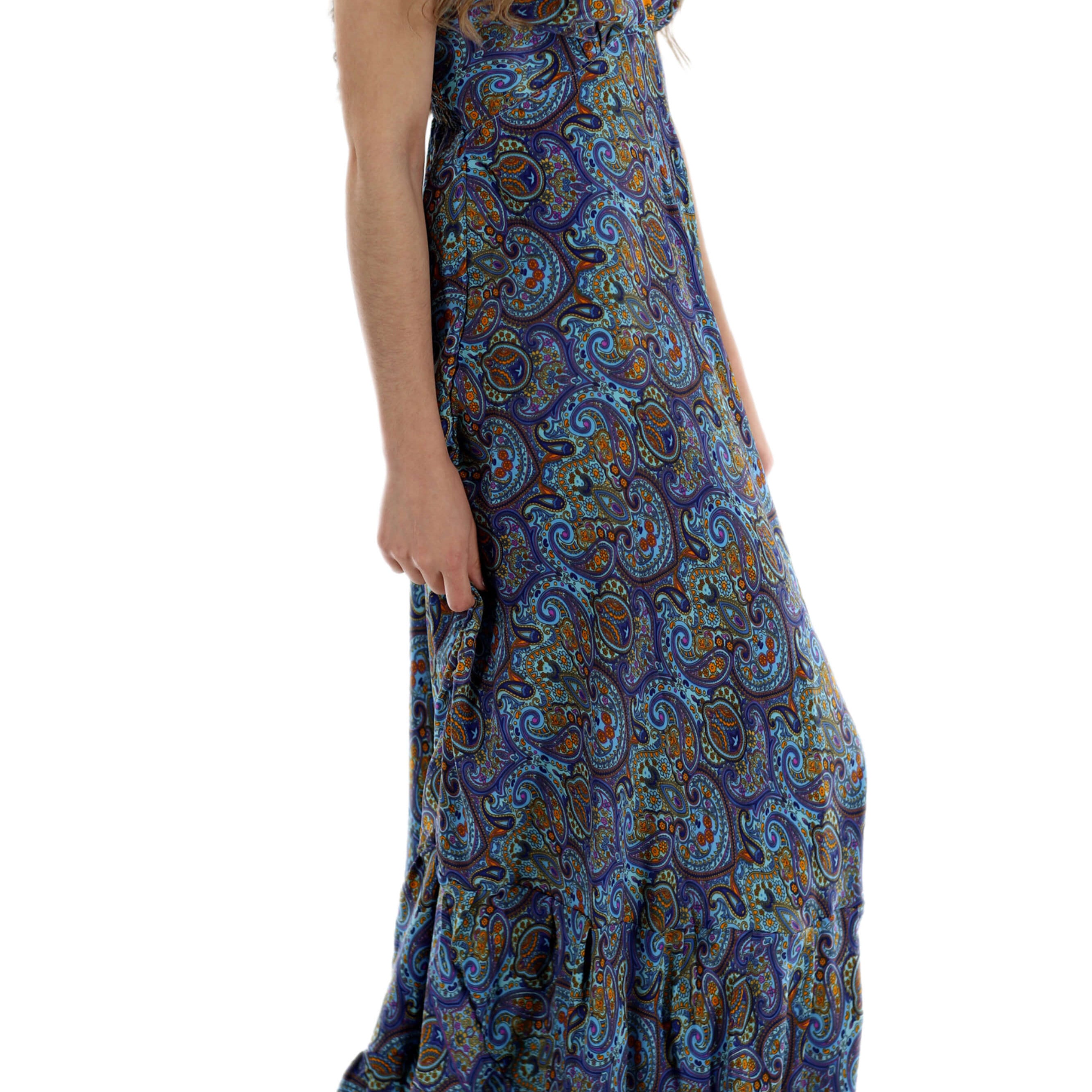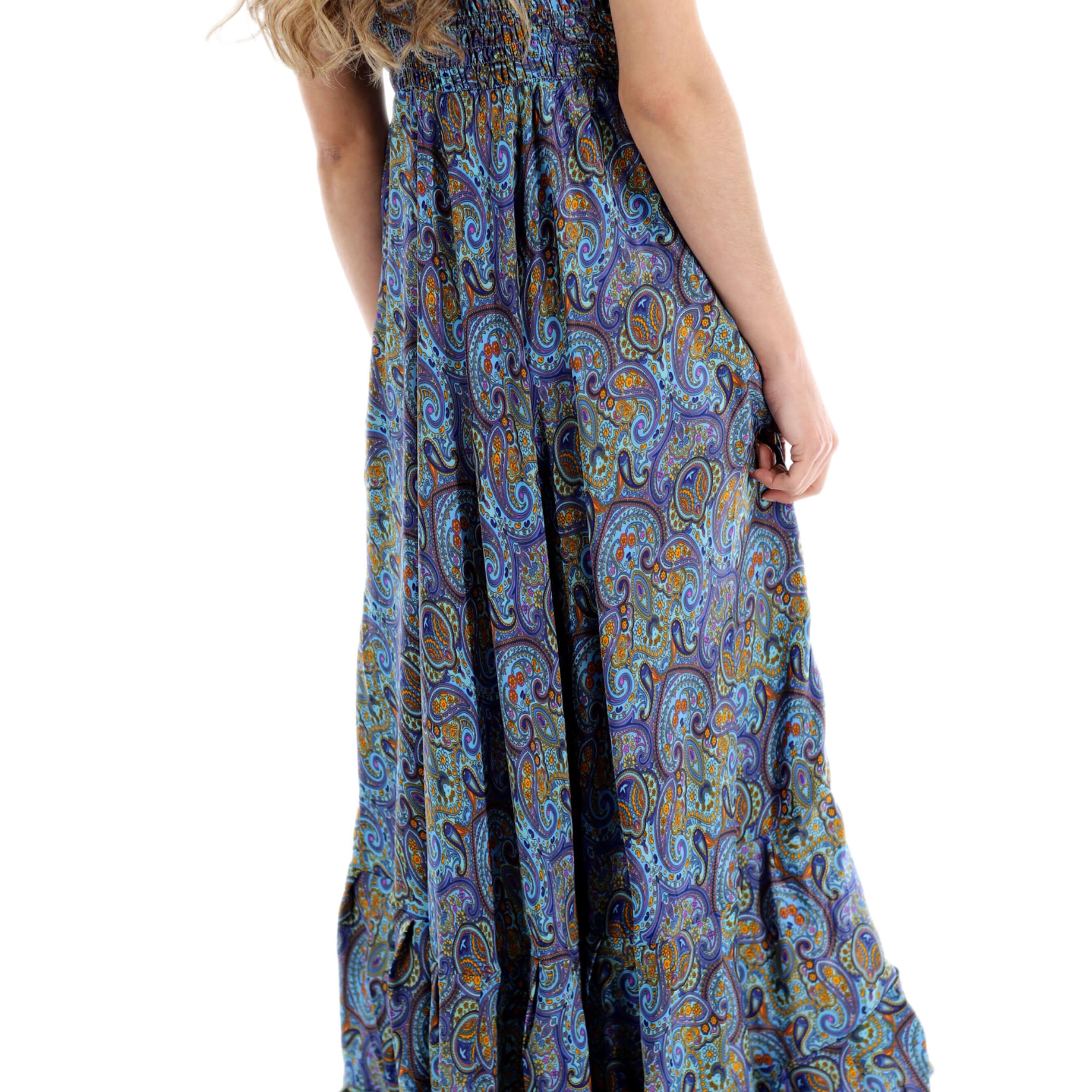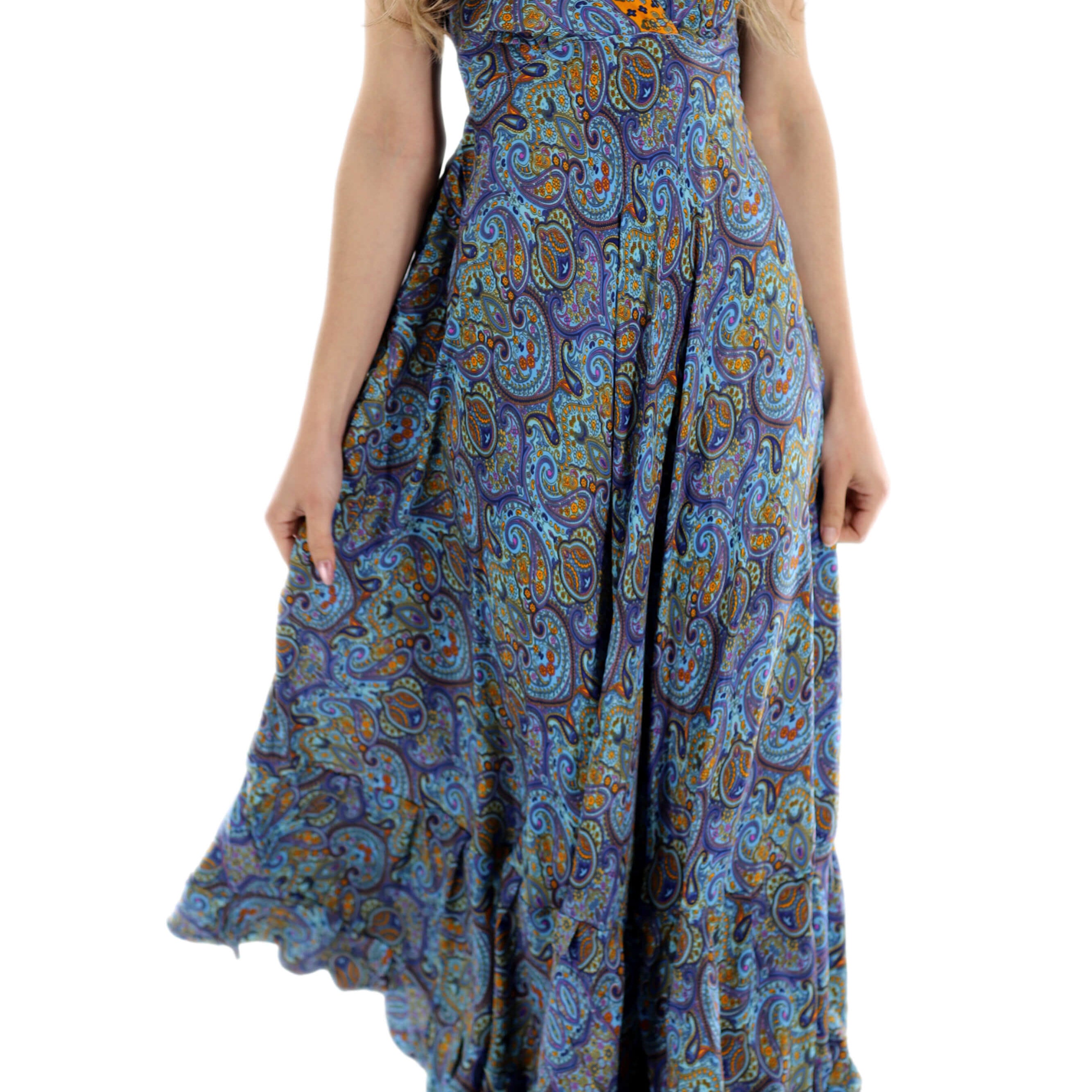 Flowy Long "Laura" 2024 Ver. V Neck Line Dress in Blue