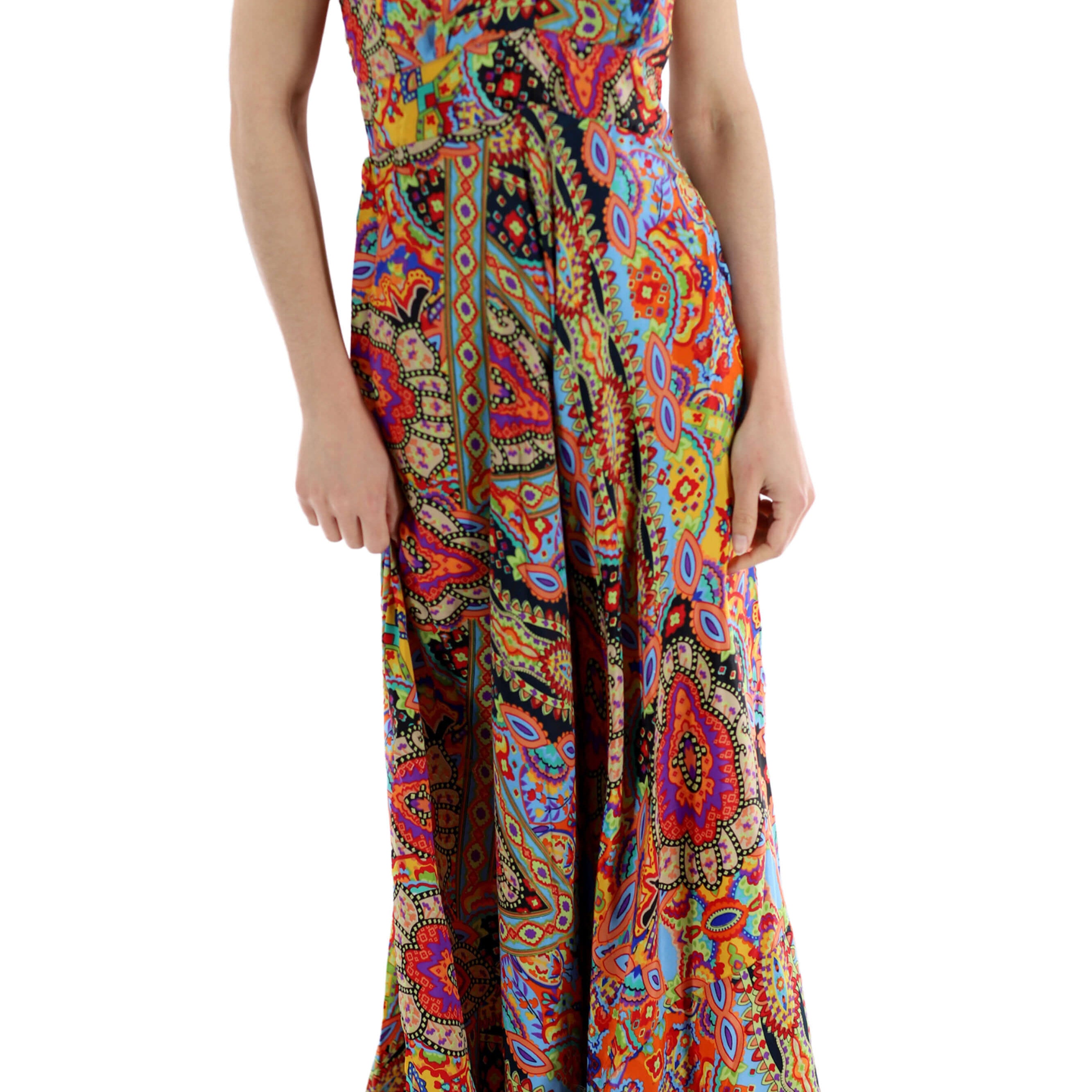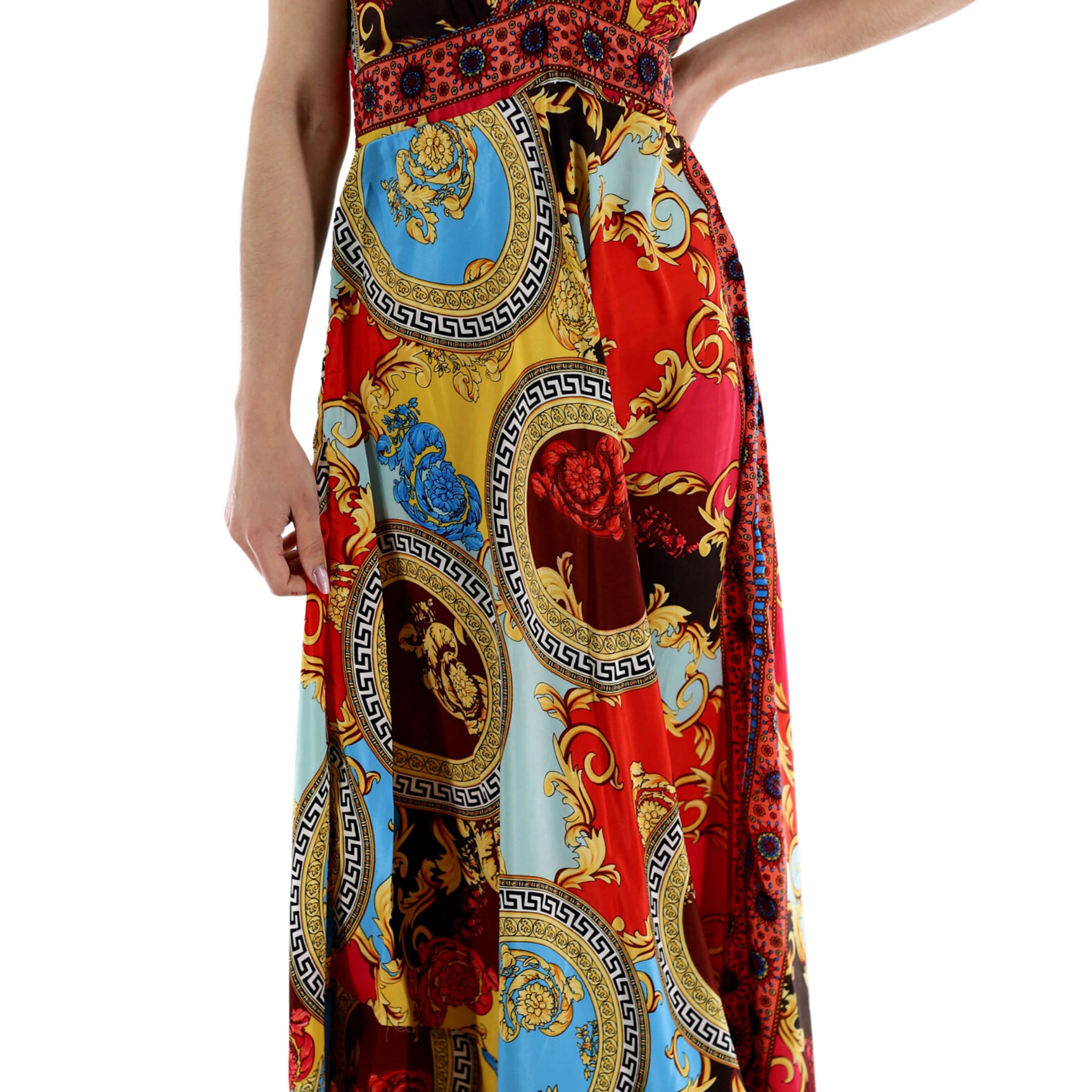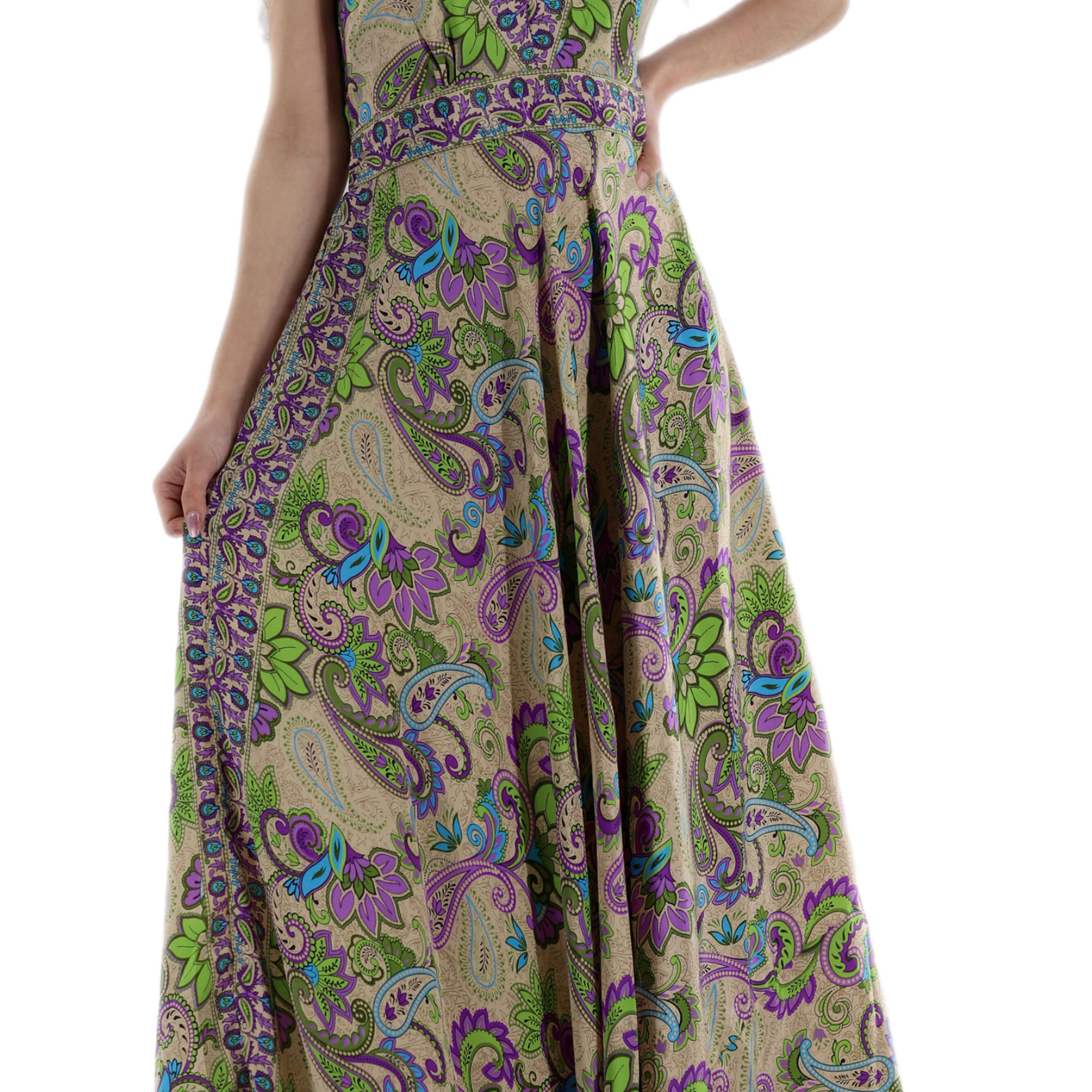 Flowy Long "Laura" 2024 Ver. V Neck Line Dress in Multi