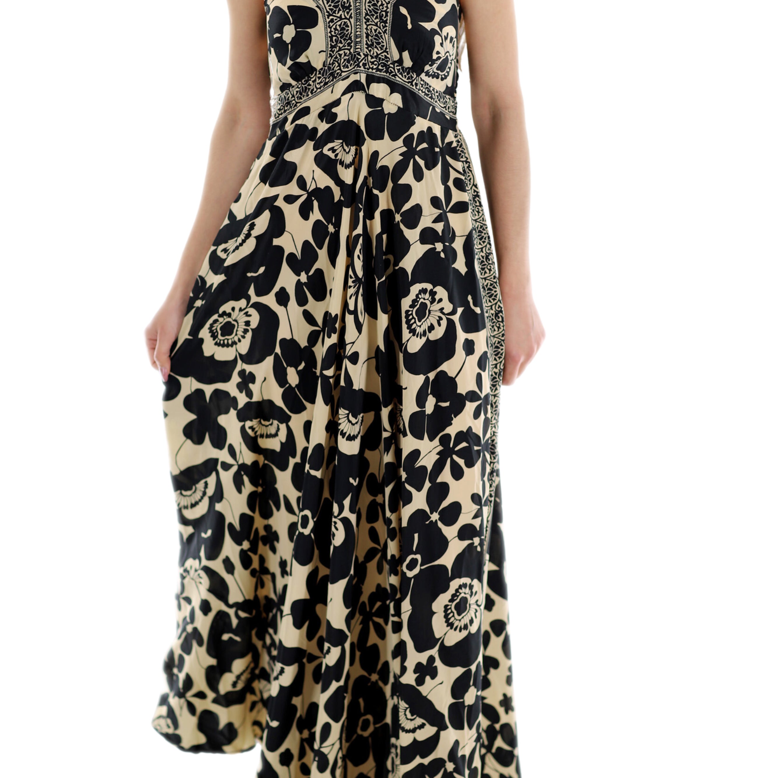 Long Flowy Floral "Romina" Maxi dress in Black/White