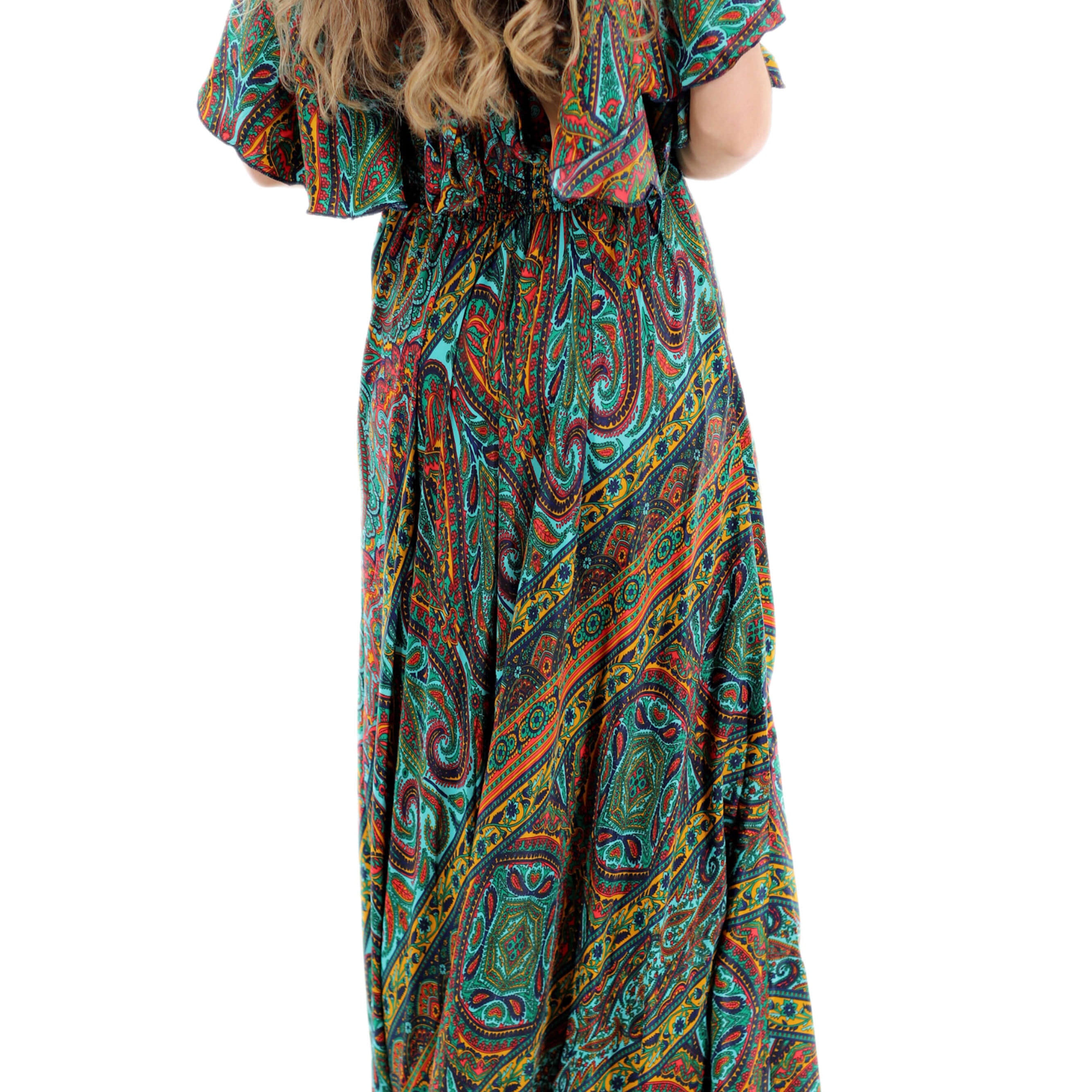 This enchanting maxi dress features a delicate floral pattern, gracefully enhancing the green canvas for a fresh and vibrant look. The flowy silhouette adds an extra touch of sophistication, making it an ideal choice for special occasions or a casual day out. Crafted for comfort and style, the 'Cara' Maxi Dress is a timeless piece that effortlessly combines fashion and femininity.