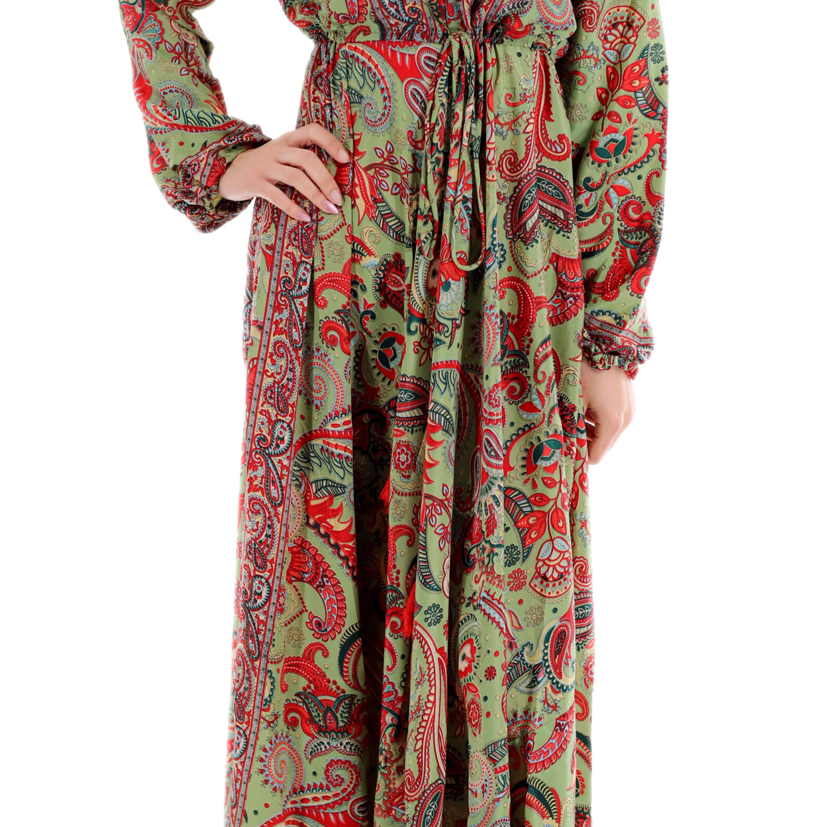 Long Flowy Floral 'Emilia' Maxi Dress - Green/Red (2024)