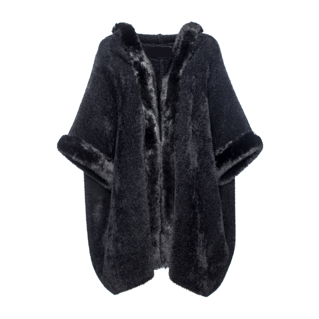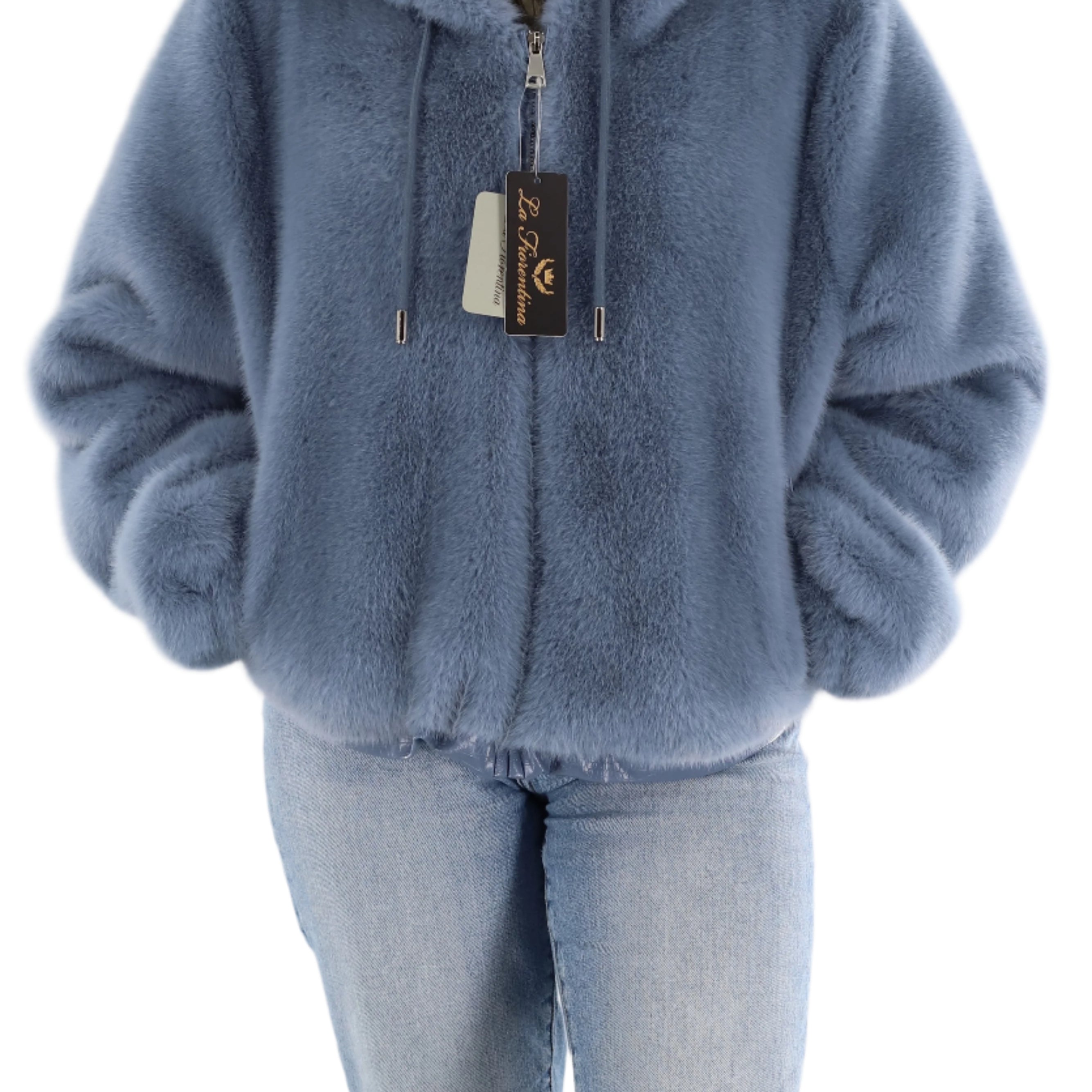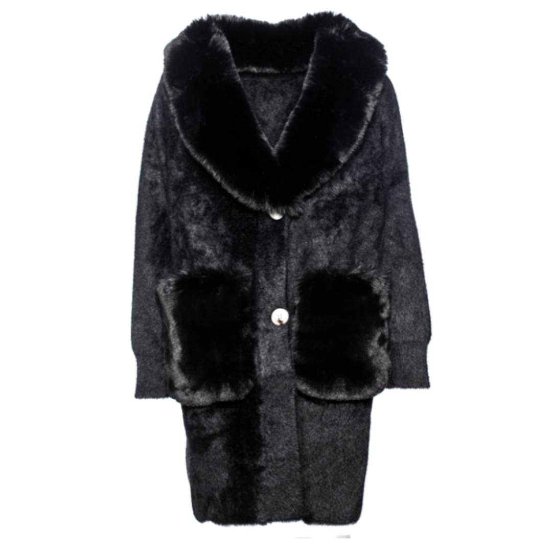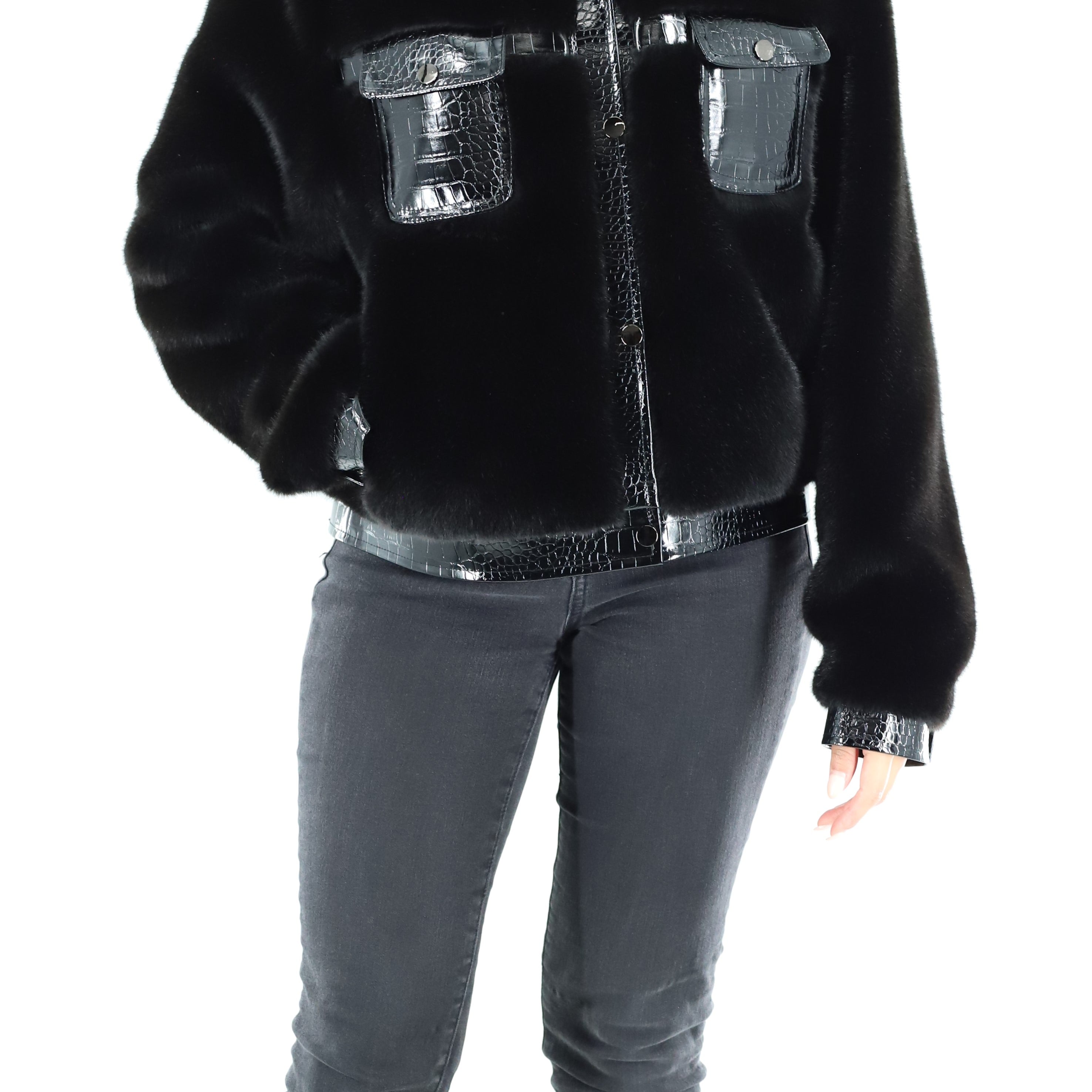 Metallic Puffer Jacket with Knit Sleeves & Faux Fur Detail