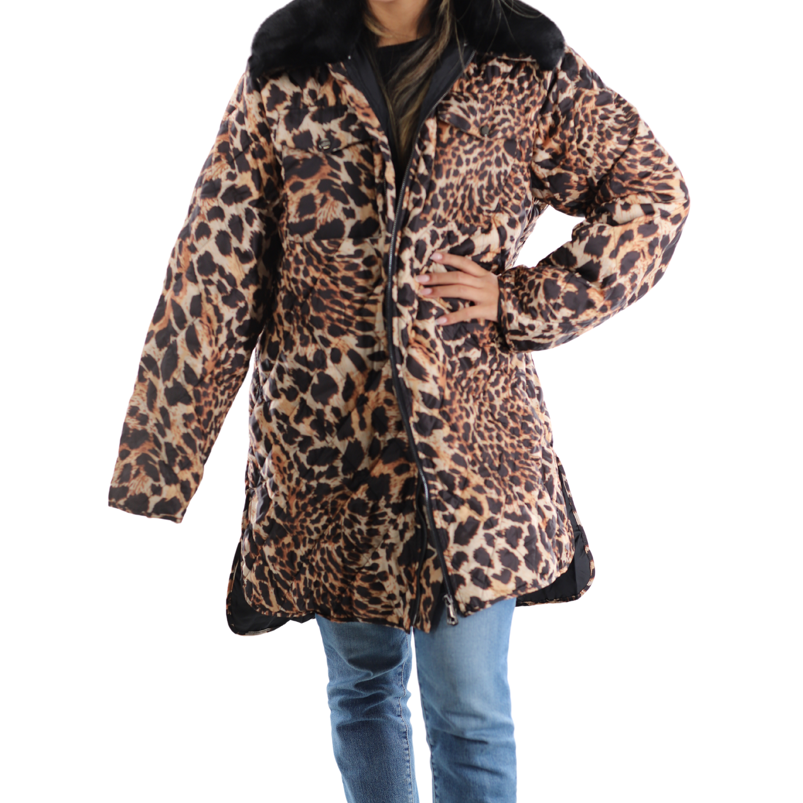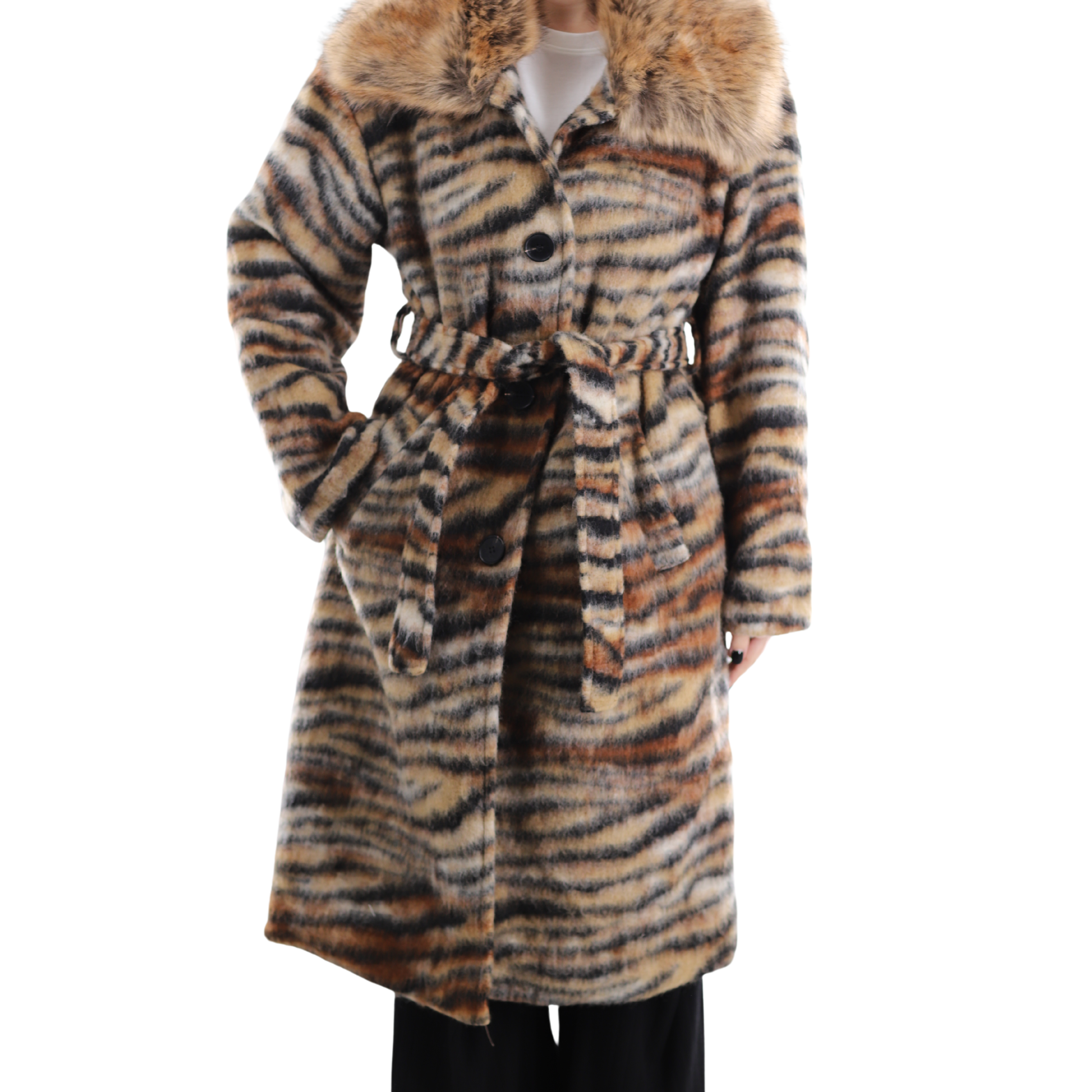 La Fiorentina Mid Length Plaid Wool Coat w/ Faux Fur Trim - Brown/Ivory