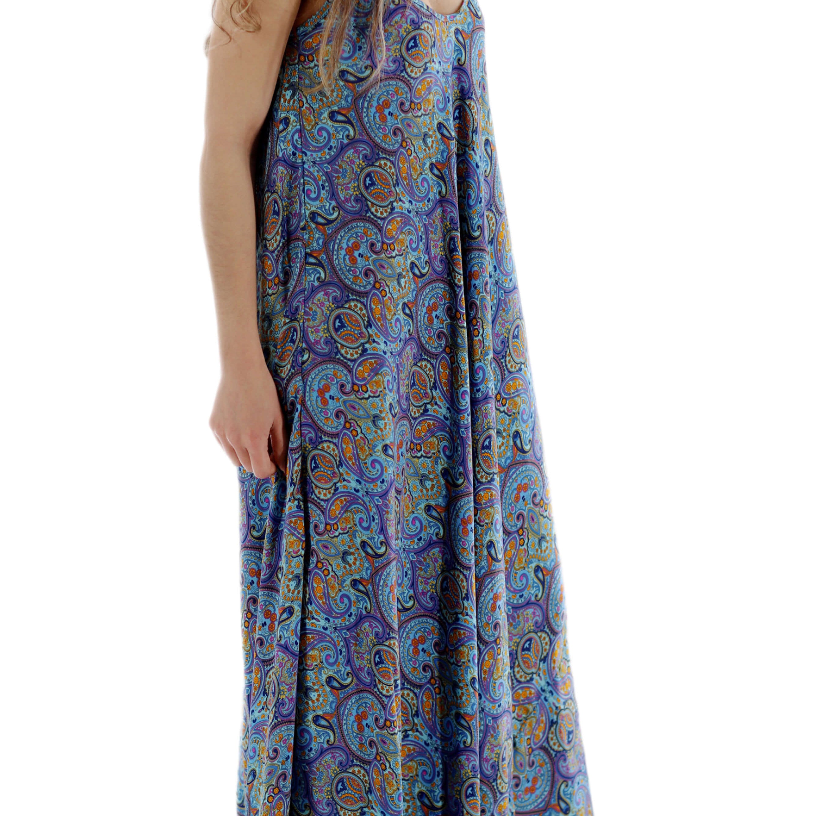 Long Flowy Floral "Stefania" Maxi dress in Blue