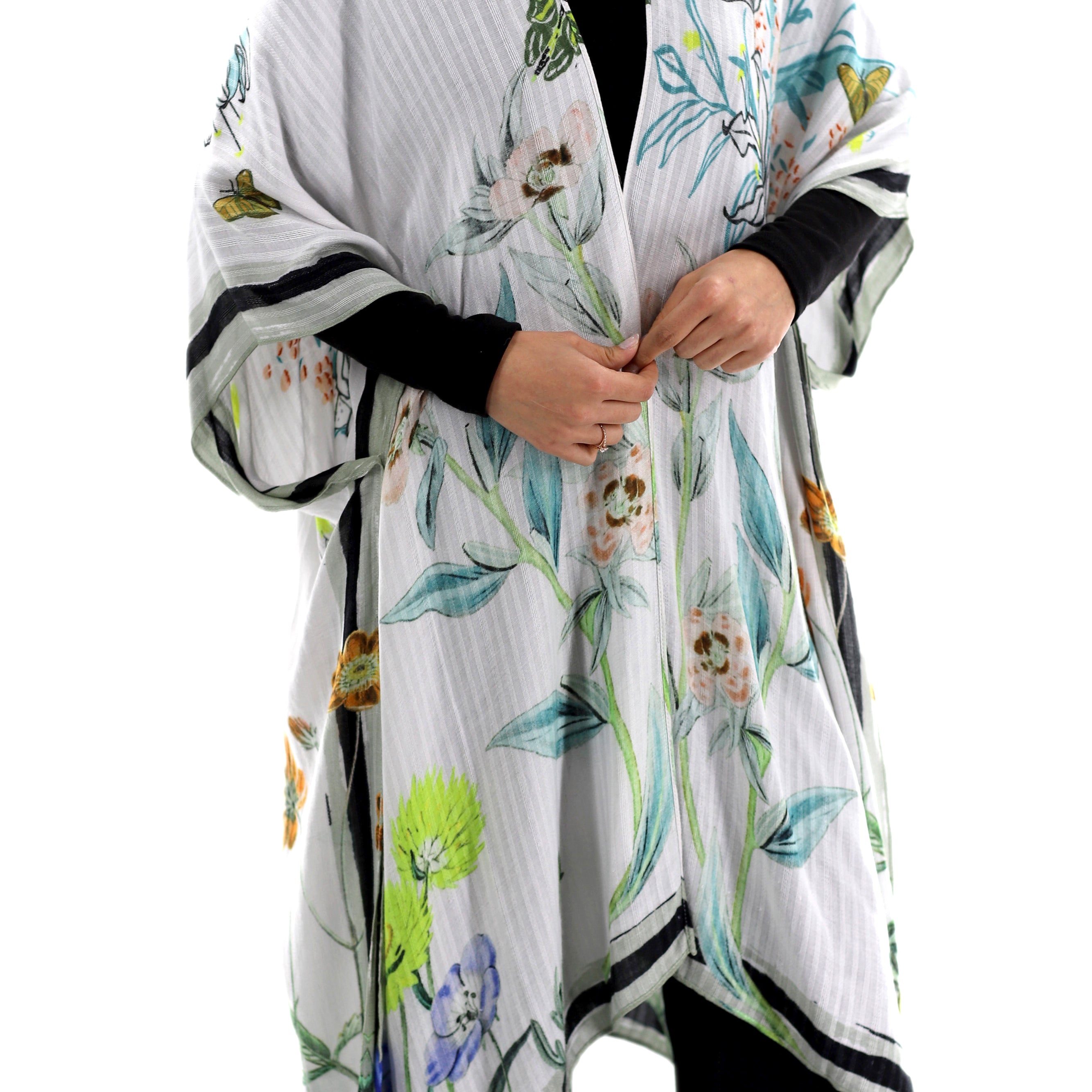 Classic Spring Kimono - Romanic Floral Green - One Size (40x75in)
