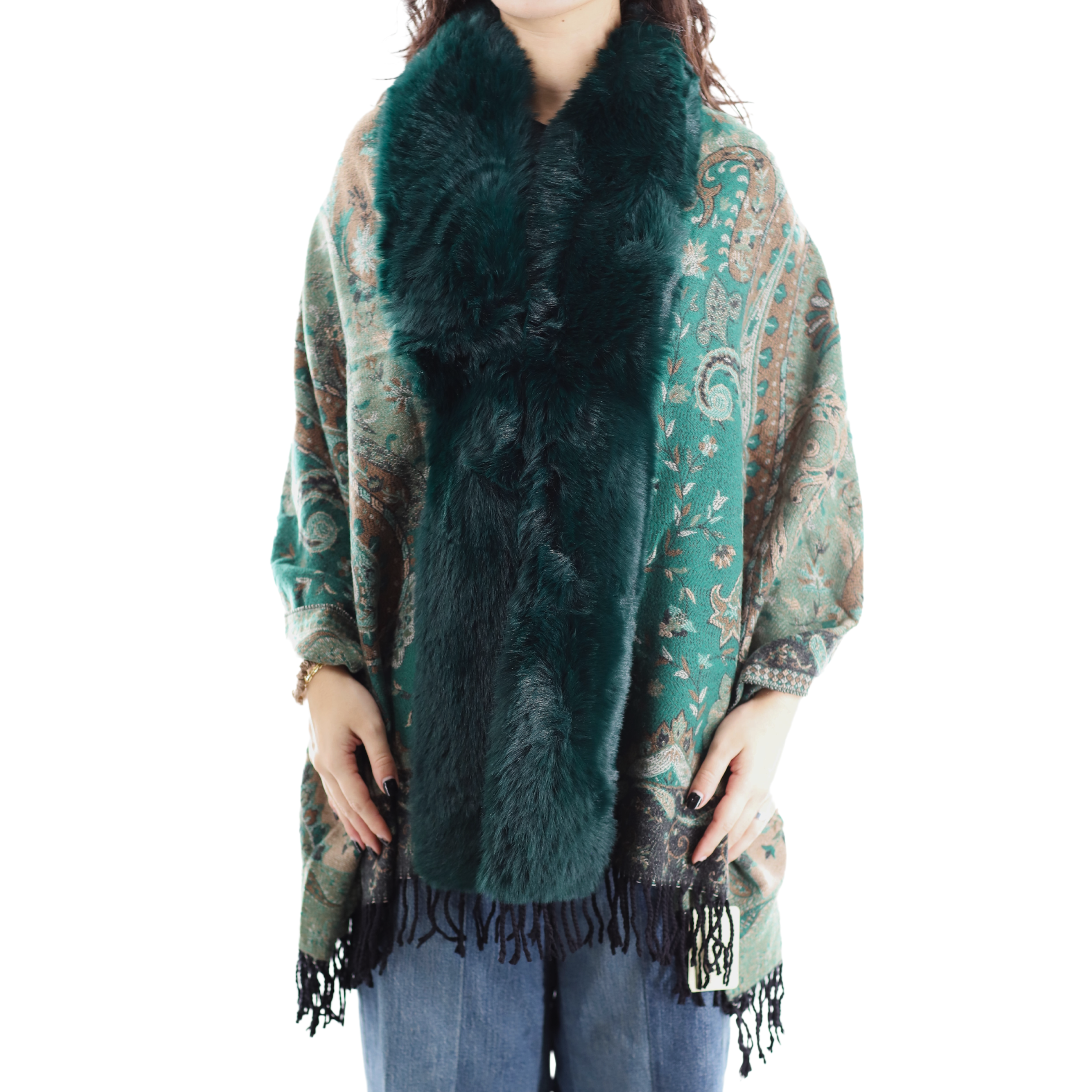 Paisley Wrap w/ Faux Fur Trim - Green
