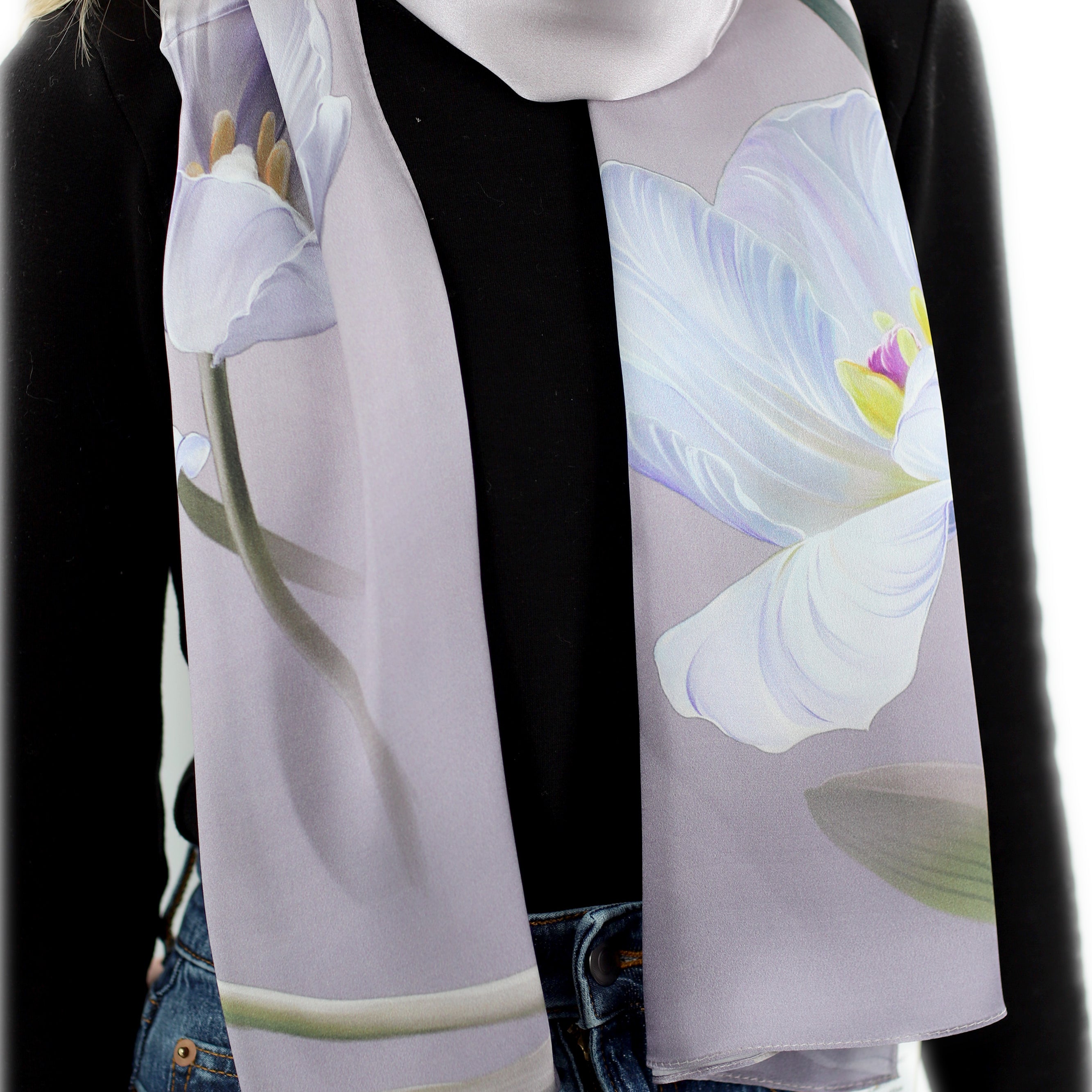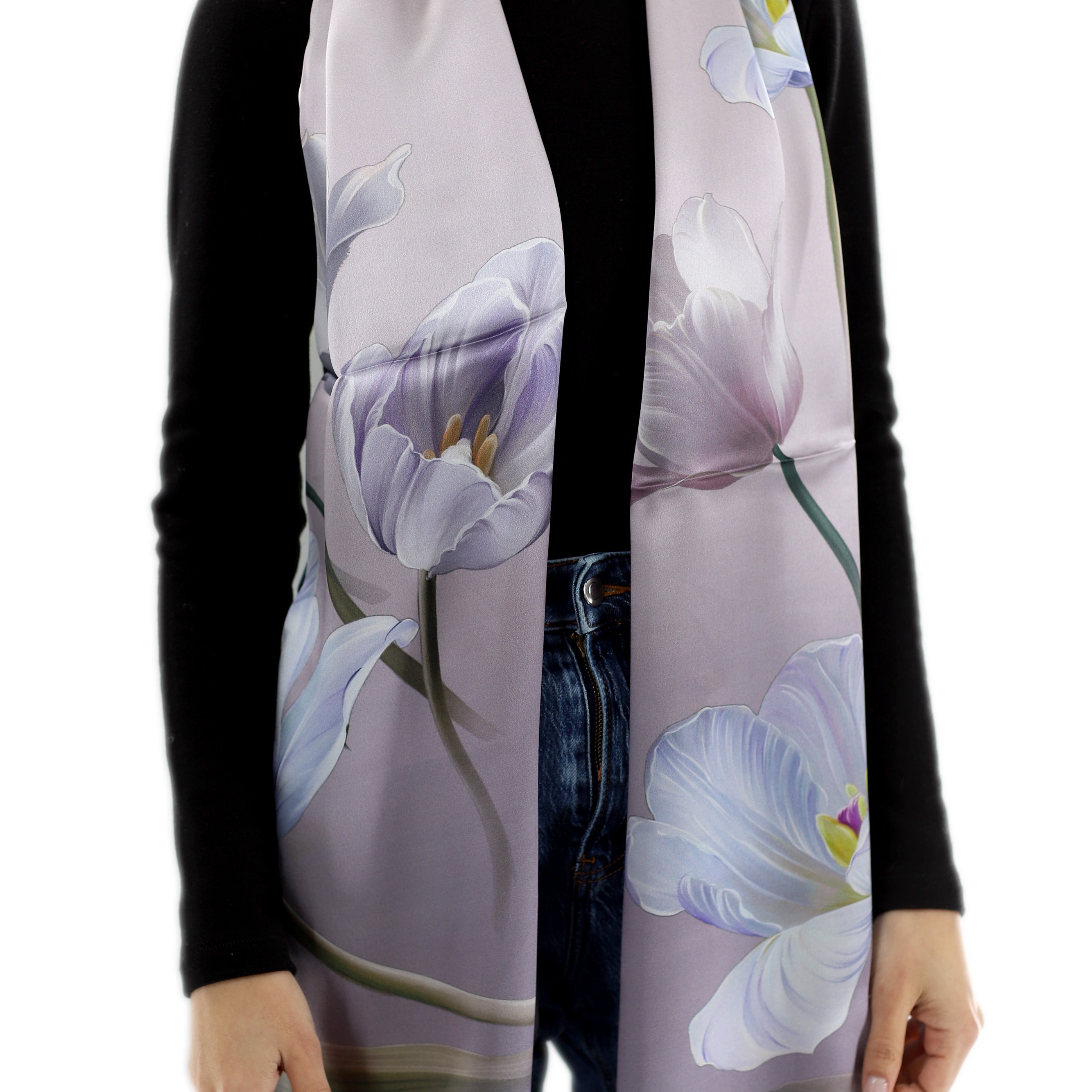 Introducing our Velvet Soft Floral Print Scarf in a regal Purple hue! This elegant accessory is crafted from 100% silk, offering a touch of luxury and versatility. The Elegant Floral Print in purple adds a rich and stylish twist, making it the perfect scarf to effortlessly enhance your everyday style.