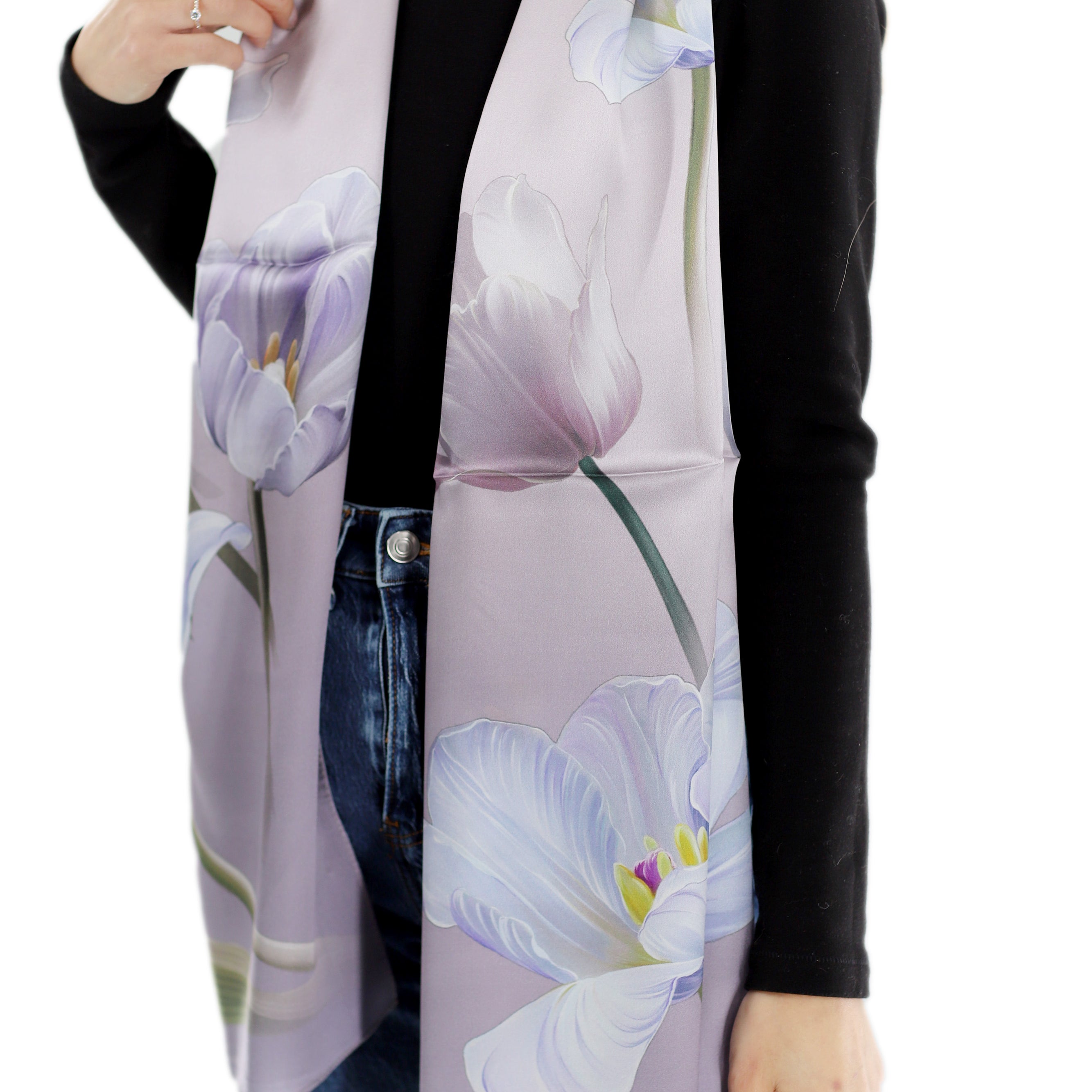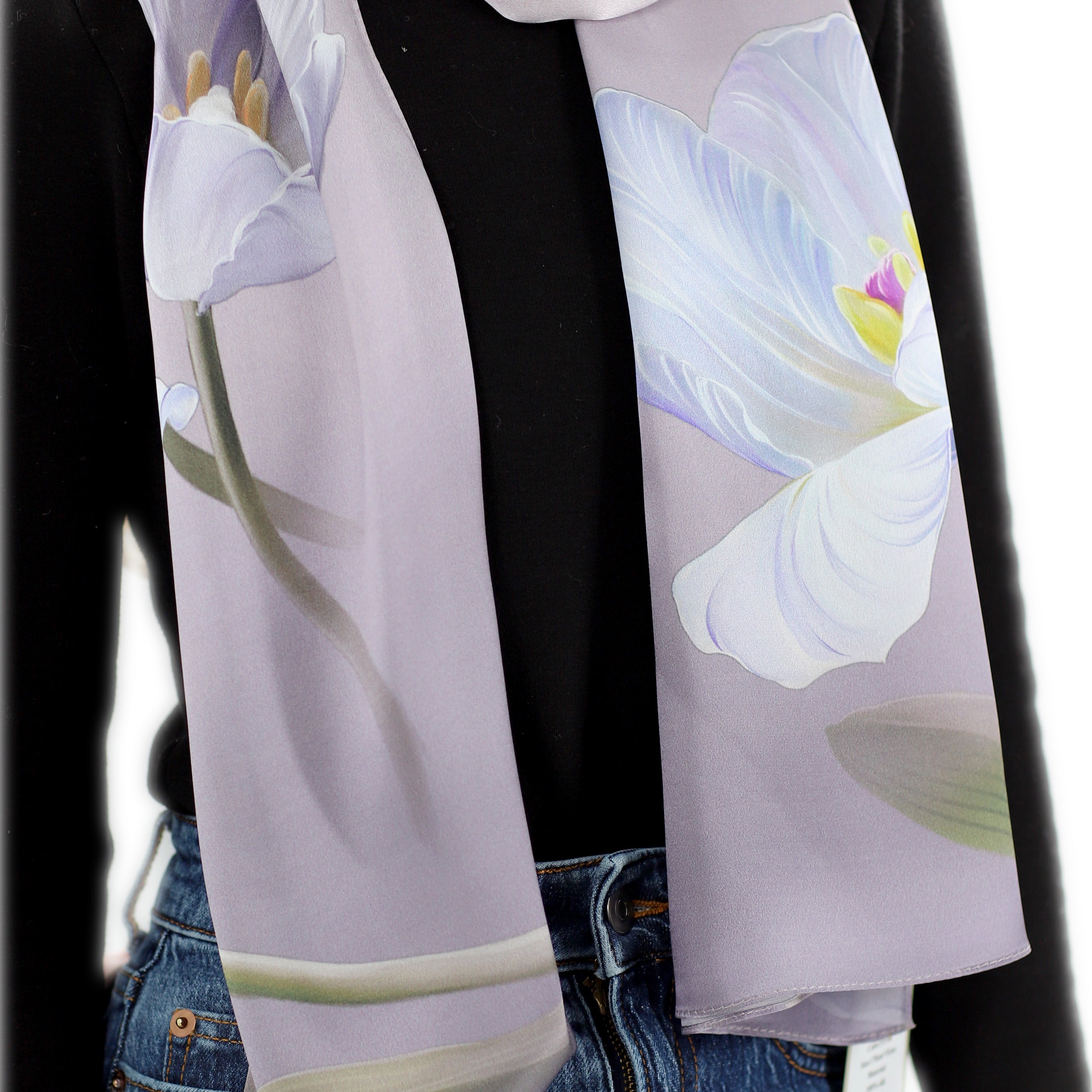 100% Silk Floral Print Scarf - Purple - (One Size 68x21.2in)