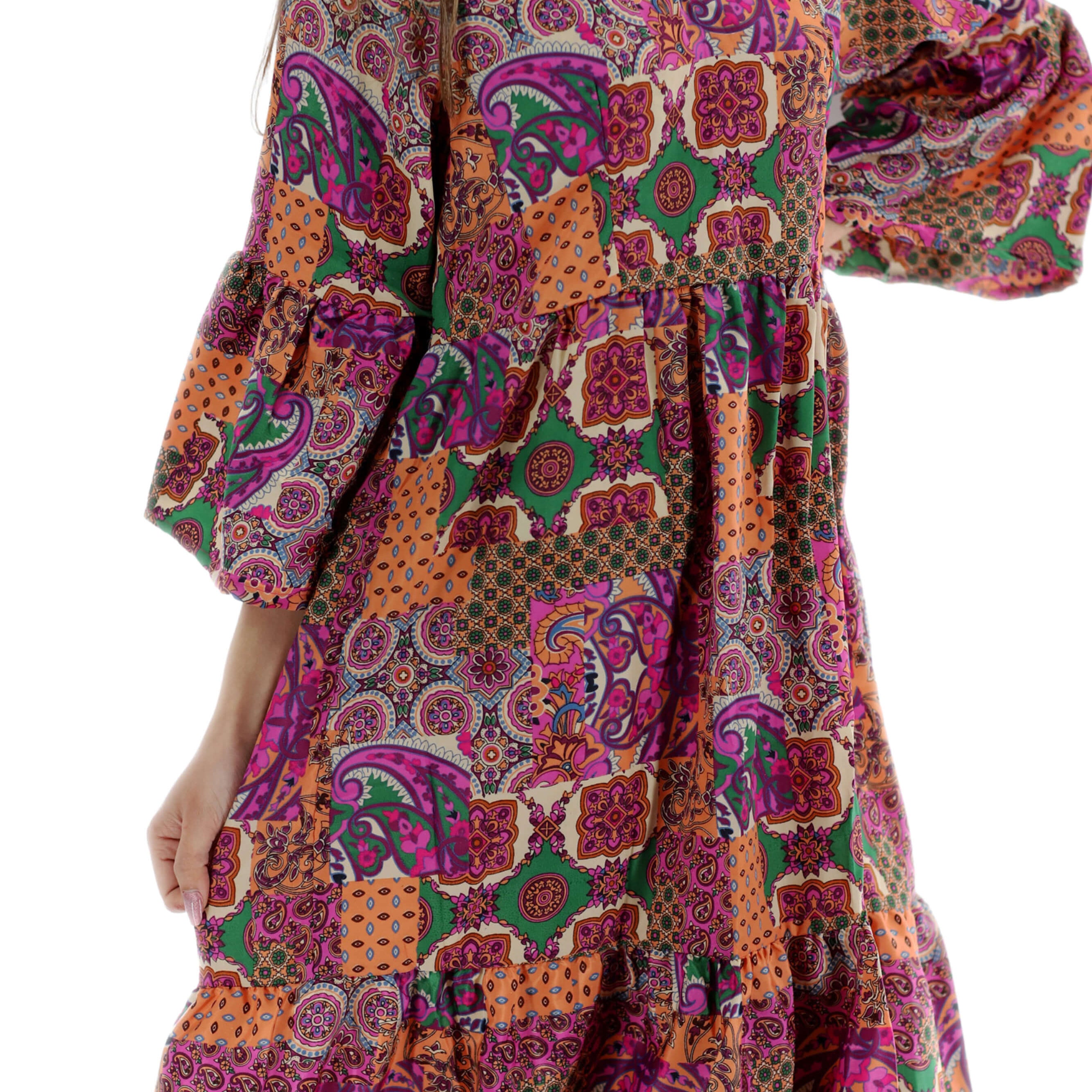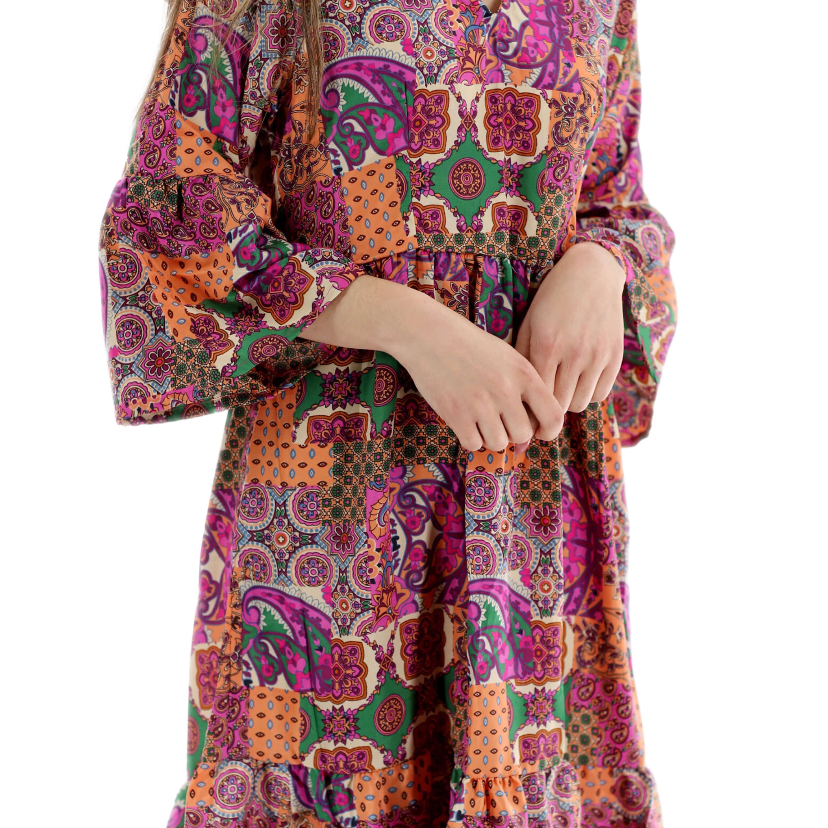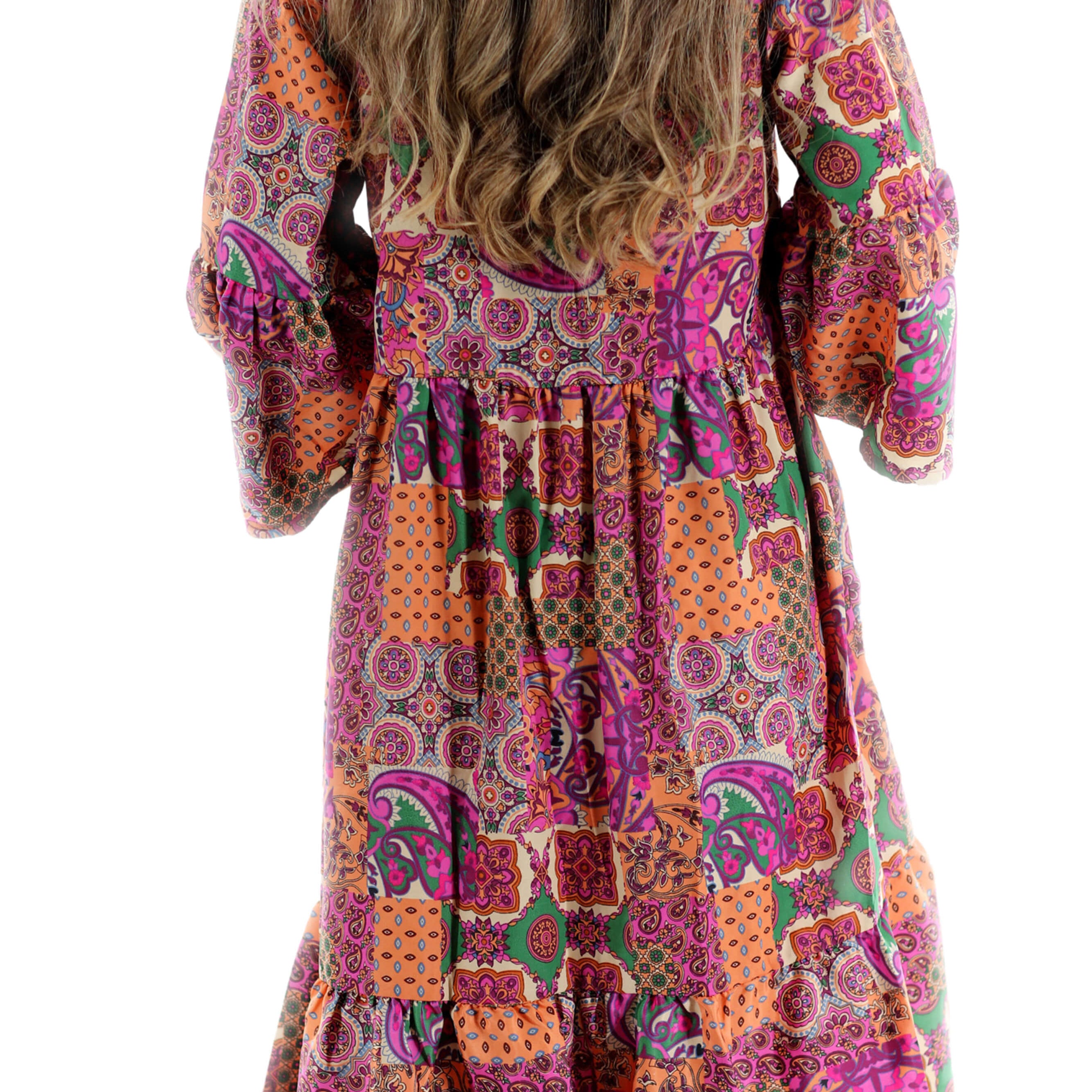 Flowy Paisley "Capri" Above Knee Dress Pink Multi