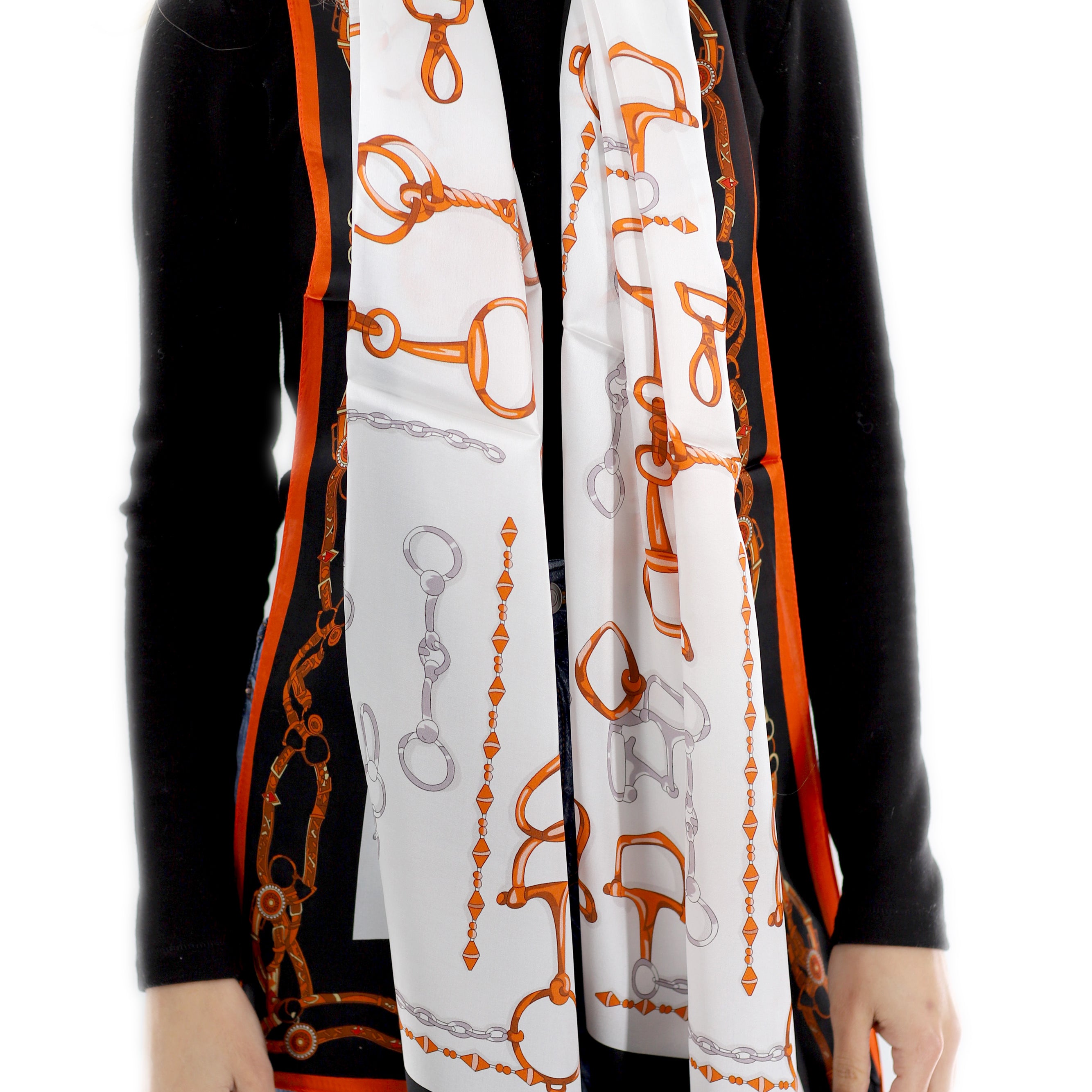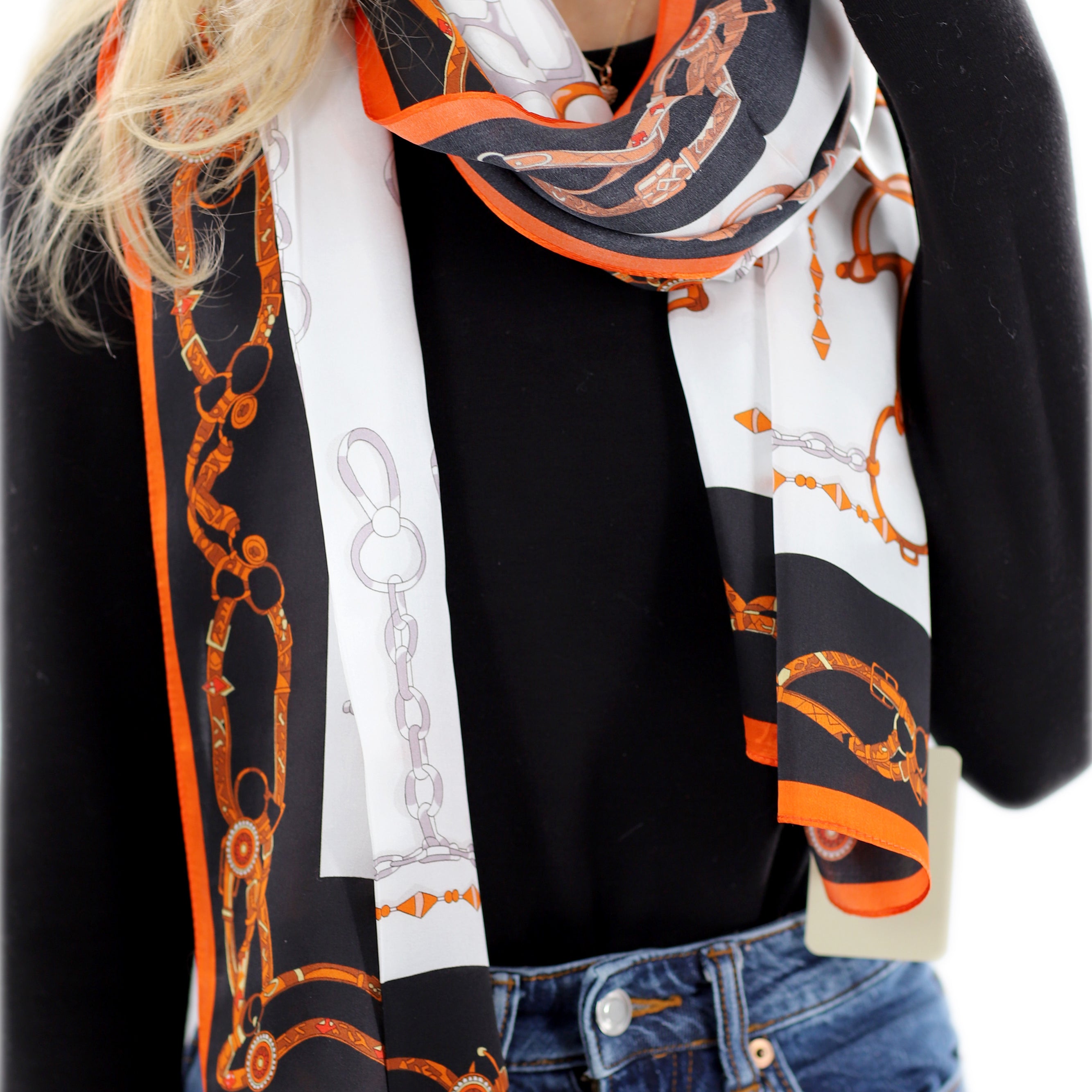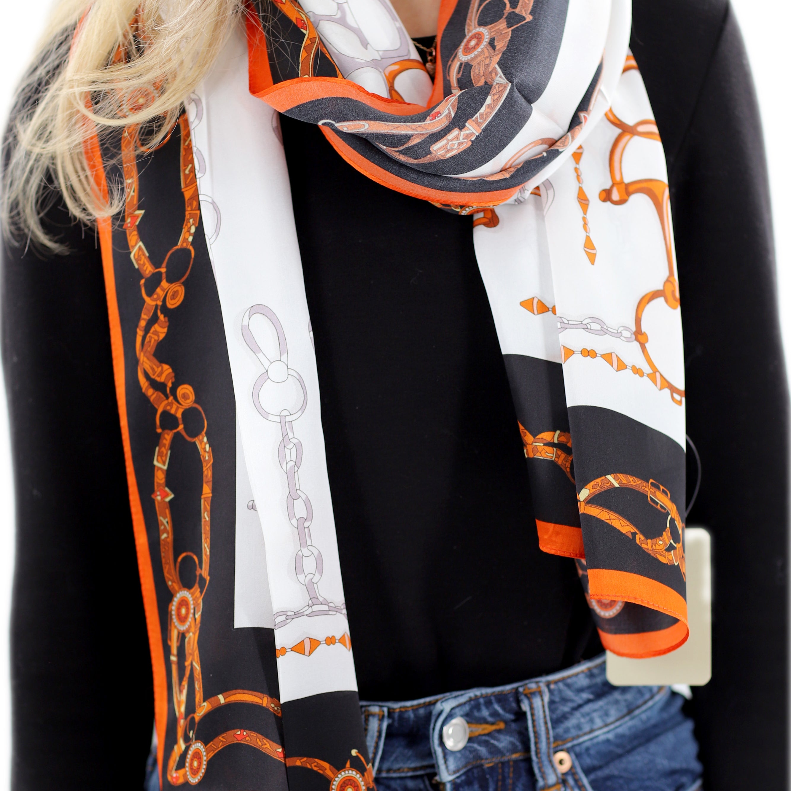 Iconic 100% Silk Chain Print Scarf - Orange - One Size (38x30in)
